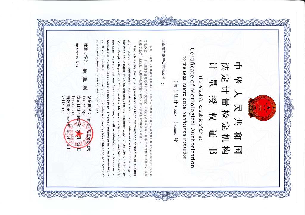法定計(jì)量檢定機(jī)構(gòu)授權(quán)證書(shū)